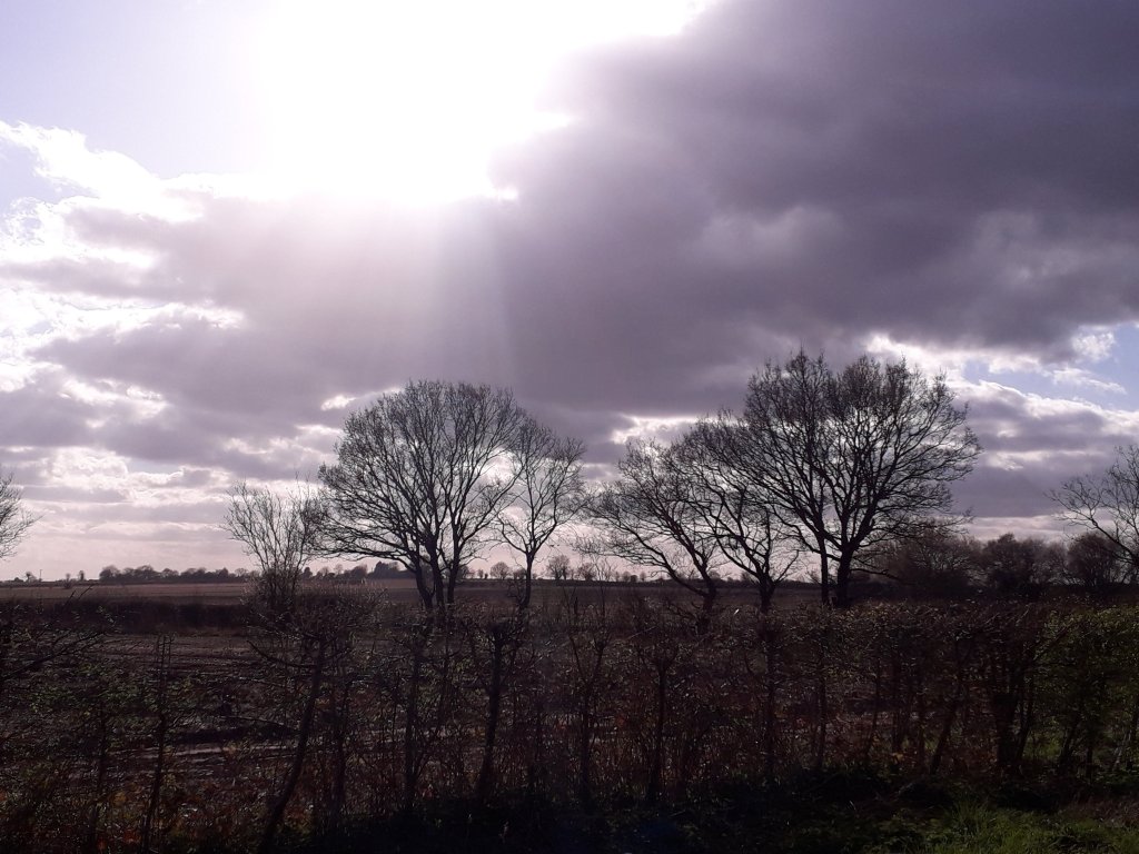 We’ve had a lot of dull, cloudy weather recently, but that hasn’t stopped me from getting out for a daily walk around the local lanes. The best thing about cloudy days is that sometimes the sun breaks through.