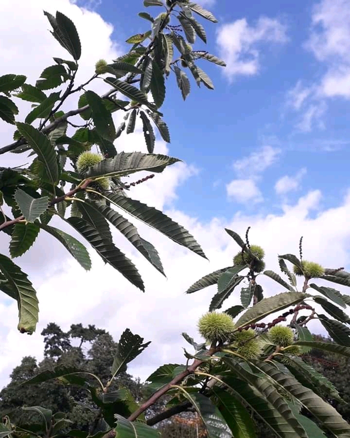 Sweet Chestnut trees (Castanea sativa) are thought to have been introduced to the UK by the Romans approximately 1700 years ago. The nuts are said to have been a major part of the Roman military diet, with soldiers being fed on a porridge made out of ground sweet chestnuts. The trees were planted wherever the empire spread, including the British Isles. The husks of sweet chestnuts have been found at the bottom of a Roman well at Great Holts Farm in Boreham, UK, and dated to the third or early fourth century AD. The Greek writer Theophrastus in his Inquiry into Plants from the 3rd century BC, mentioned the nourishing quality of the fruit… and the digestive issues it caused, though he mainly spoke of the use of the tree for timber and charcoal.