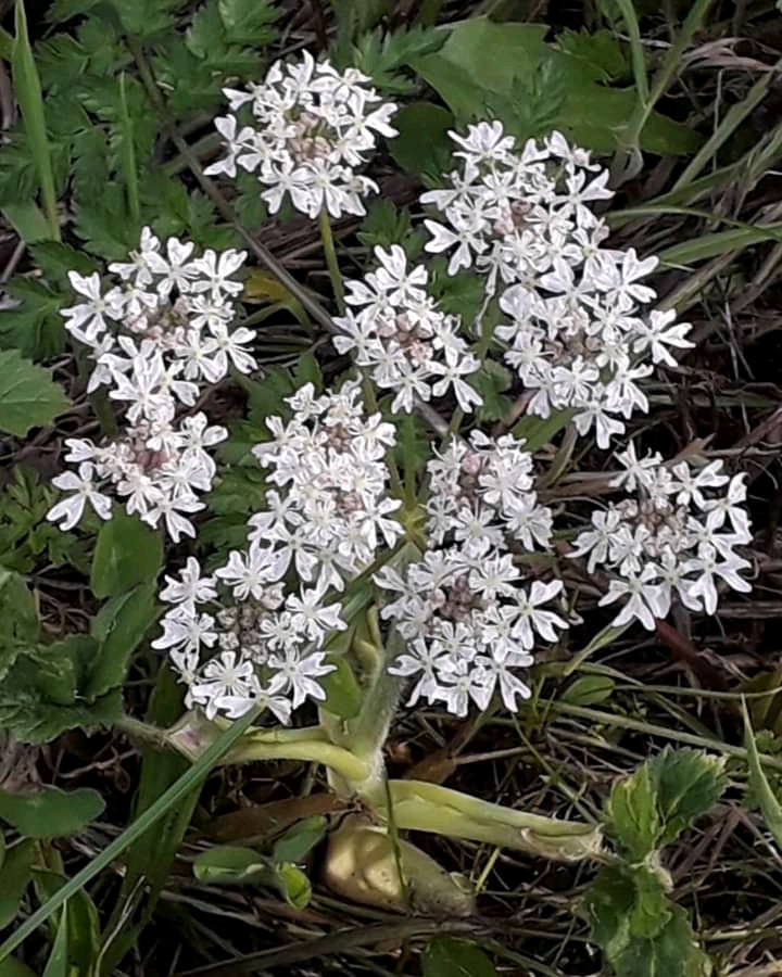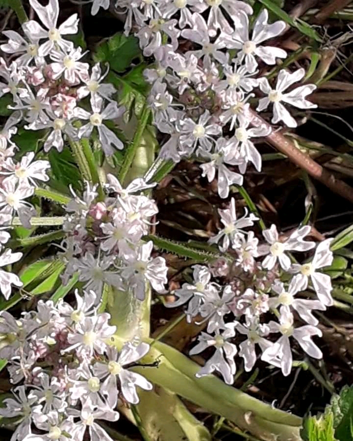 At the other end of the meadow, close to the lane, a few sprigs of Hogweed (Heracleum spnondylium) have popped up.