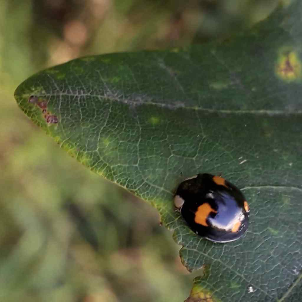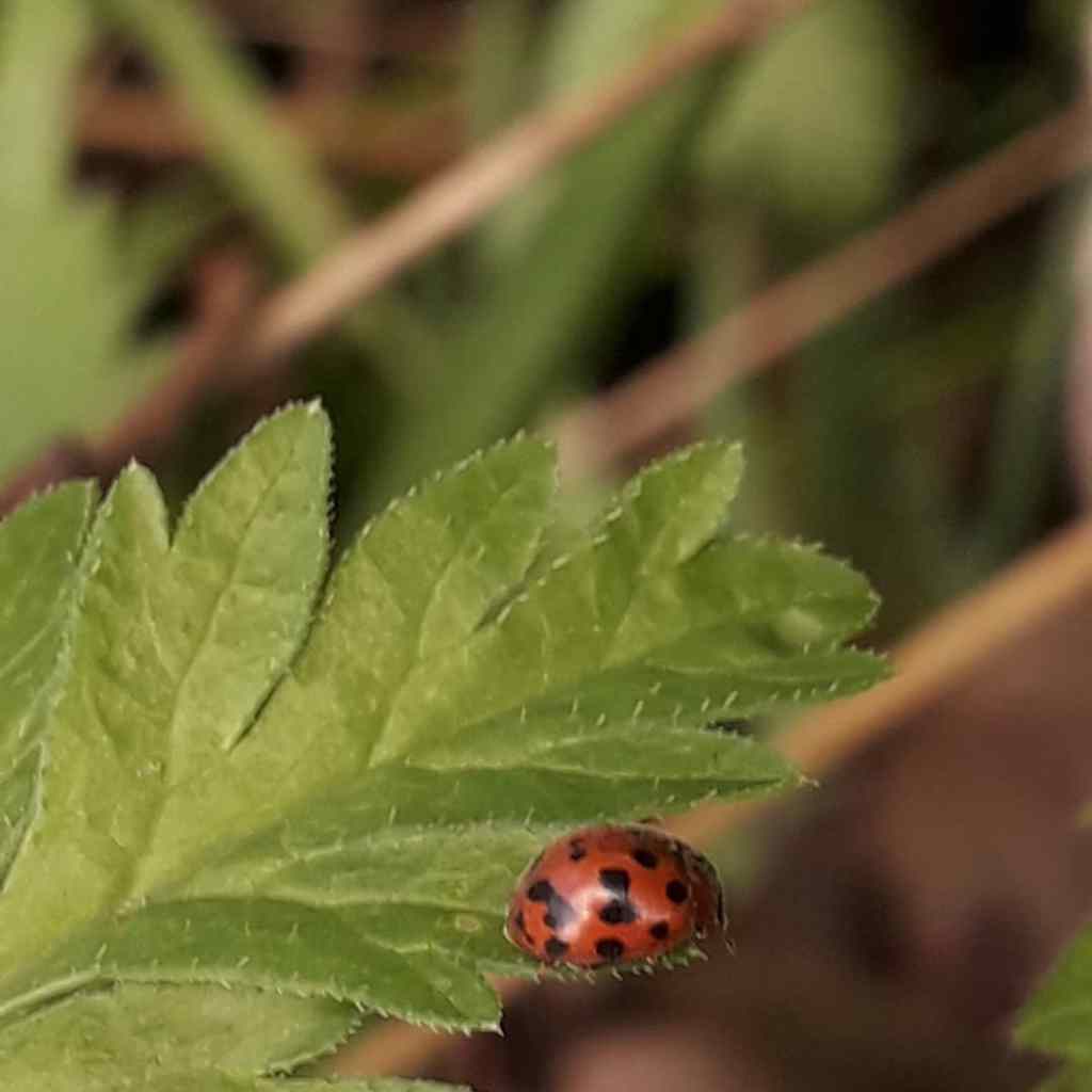 Whilst I do still think that the black one with orangey red spots is a Harlequin ladybird, I’ve tentatively identified the other as a 24-spot Ladybird, which is a species that I’ve never before seen.