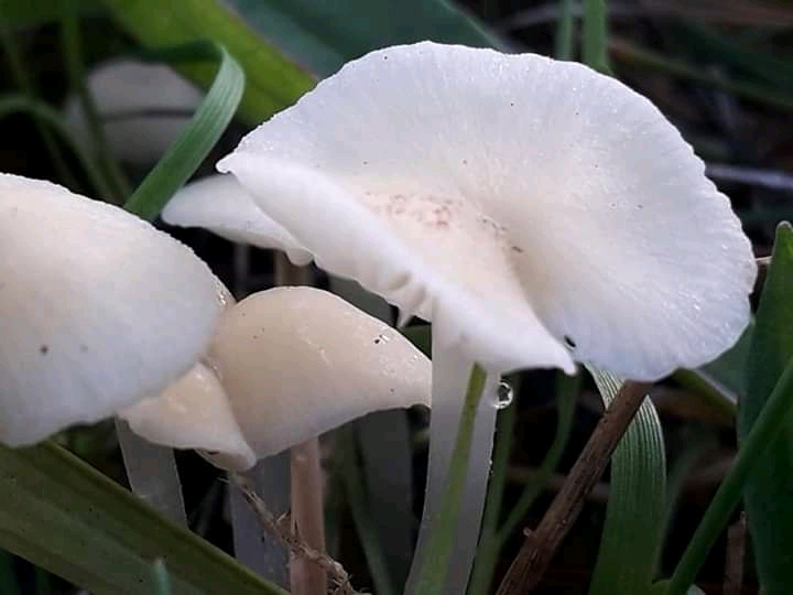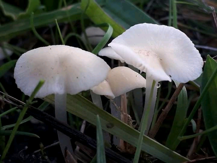 This little white clump, however, from the look of their slightly translucent stems, might be Milking Bonnets (Mycena Galopus var. candida). To be certain I would need to snap the stem of one to see whether a white, milky fluid is released. If I ever manage to find any more of them I’ll do so!