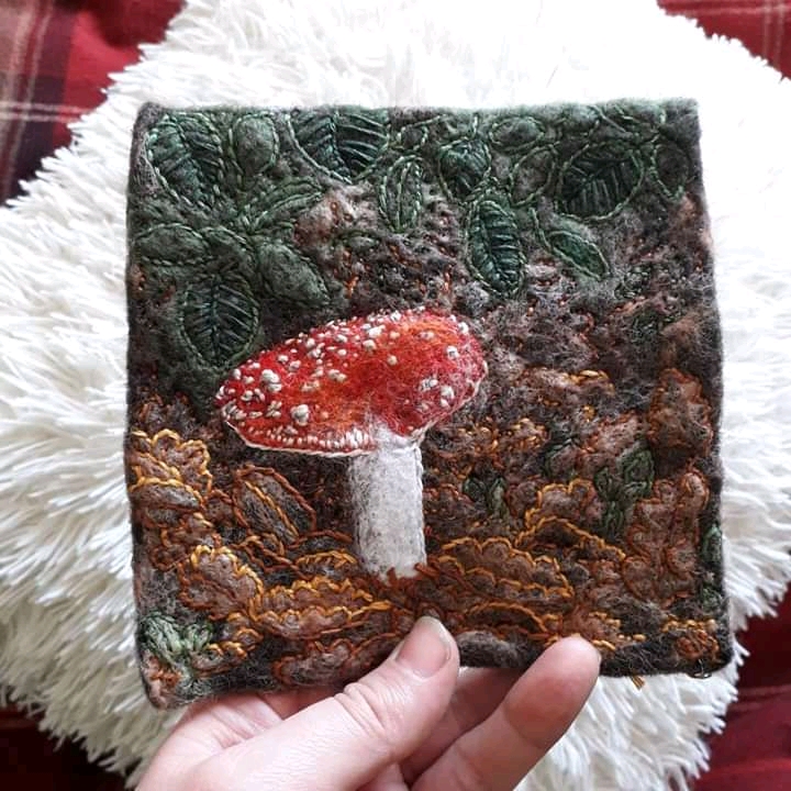 Instead, all I could think about as I walked the loop around the village lanes, was that my new embroidery threads had finally arrived and I could put the finishing touches to my Fly Agaric felt and embroidery picture. Which is what I did once I got home. I’ve been waiting to sew on the oak leaves for a while now.