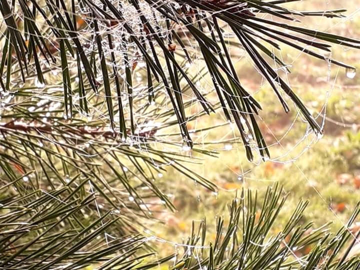 The old growth of the laneside verges were covered in delicate spiderwebs and fragile droplets, an ephemeral beauty granted by the moisture rich air.