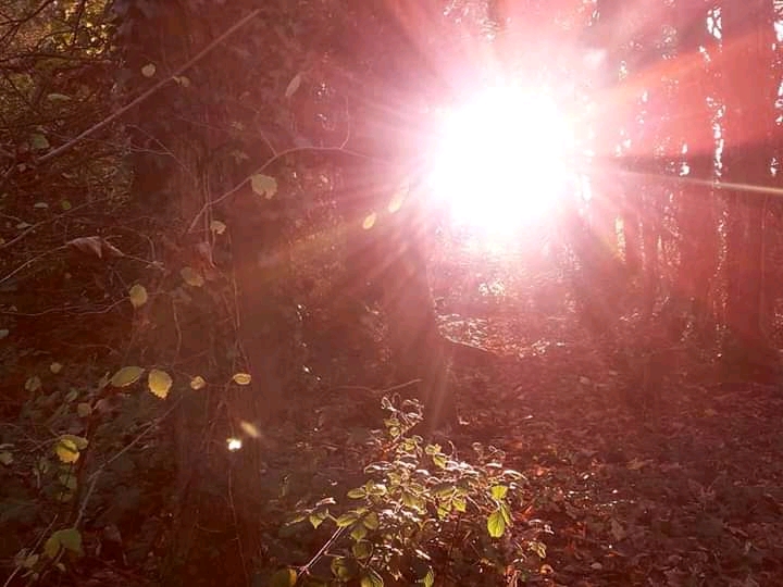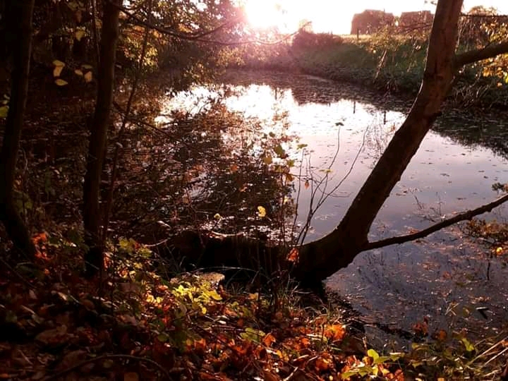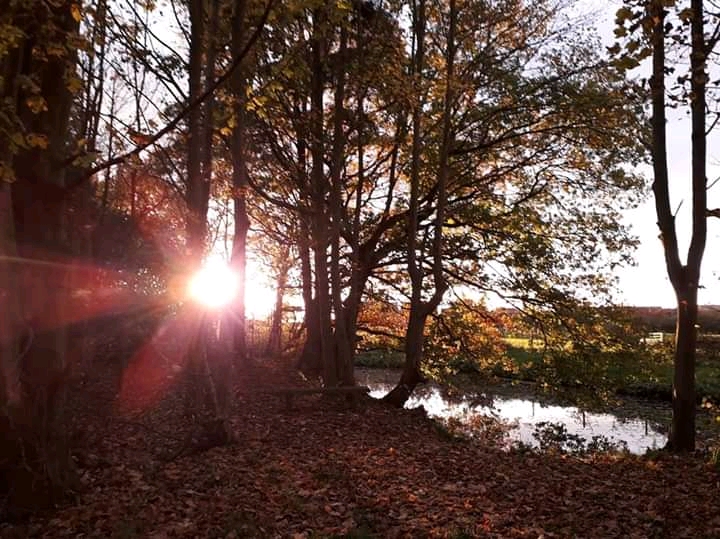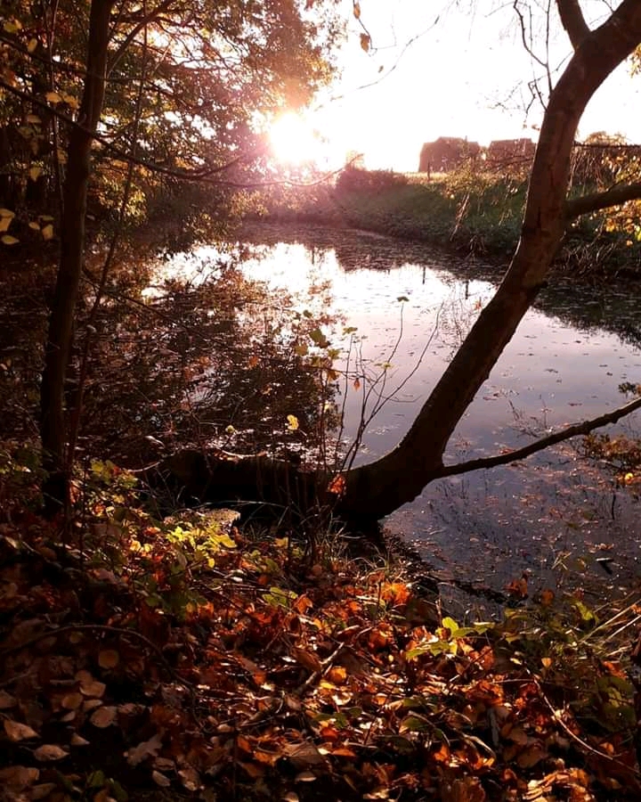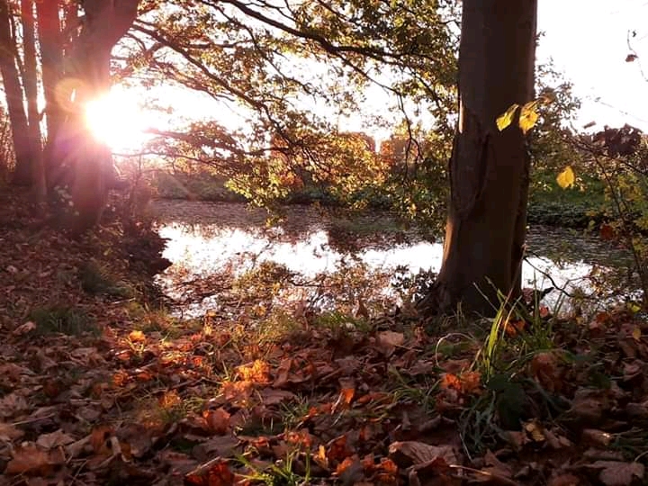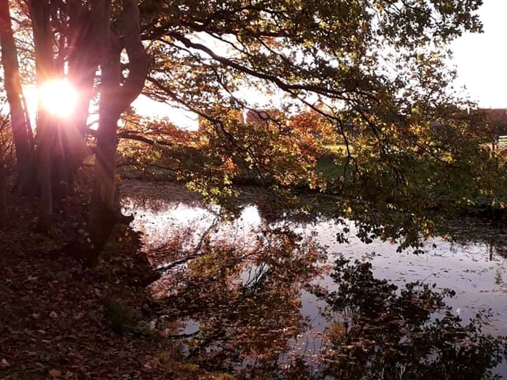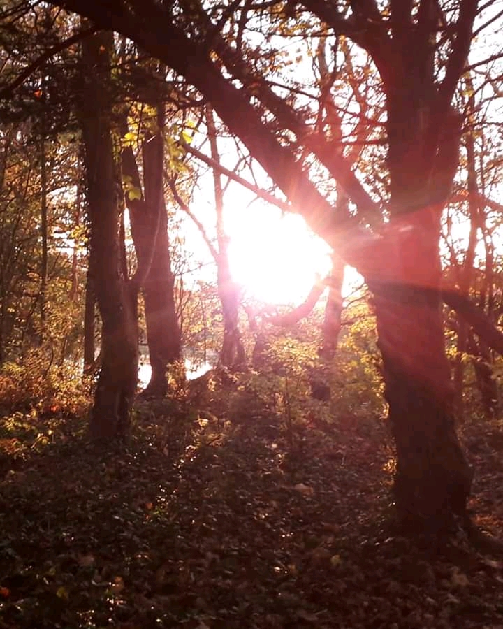 I swiftly made my way back to the little woodland and the pond, where sunbeams burst through the trees and shattered over the water.