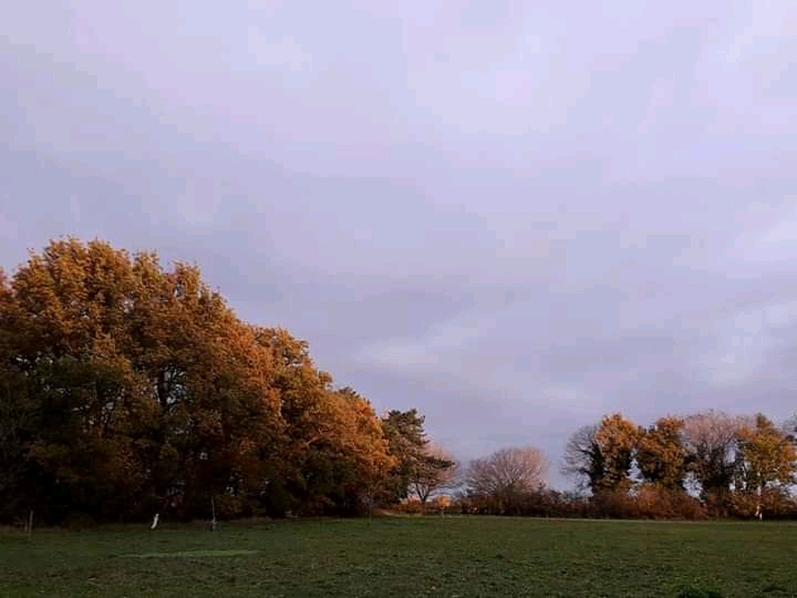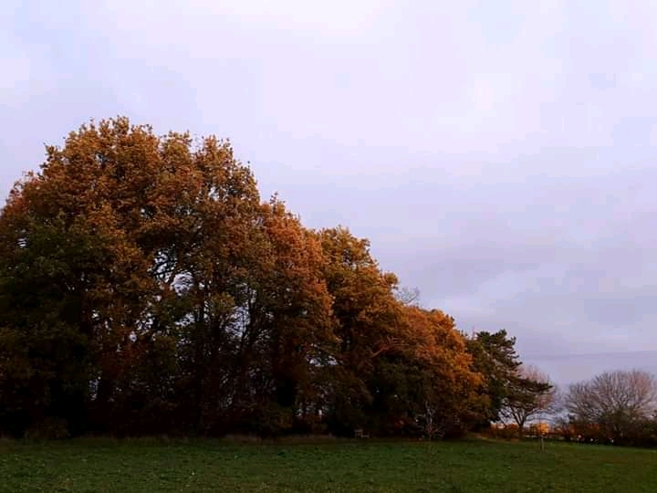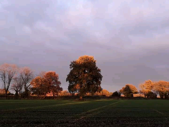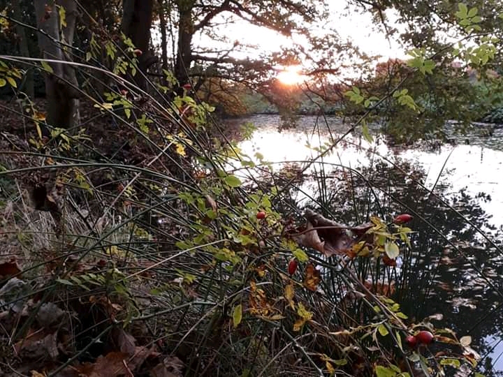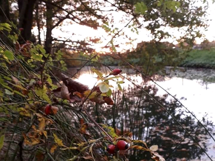 I was just about to leave the village Nature Project site and wander home when I encountered a fellow meadow walker. We stopped and chatted (socially distanced, of course) for a while and, just as we parted company, the sun emerged from behind clouds as it sank towards the horizon. The golden light on the trees was such a gorgeous sight as it heightened the autumnal golds in its lustrous glow, and had been so nearly missed.