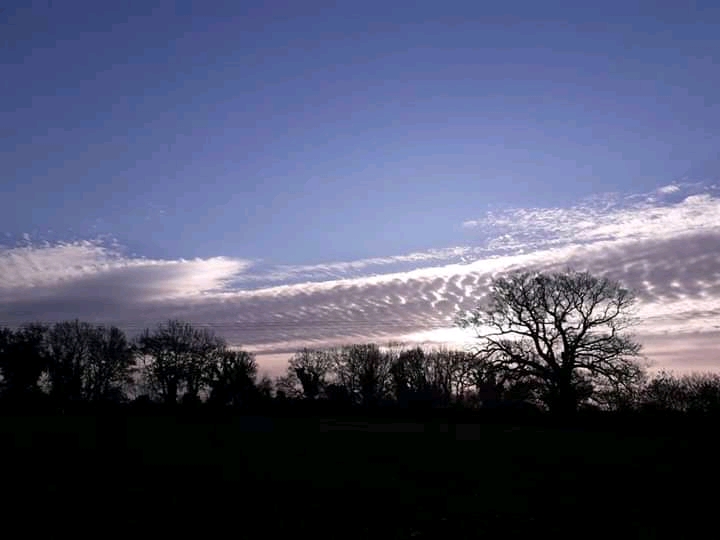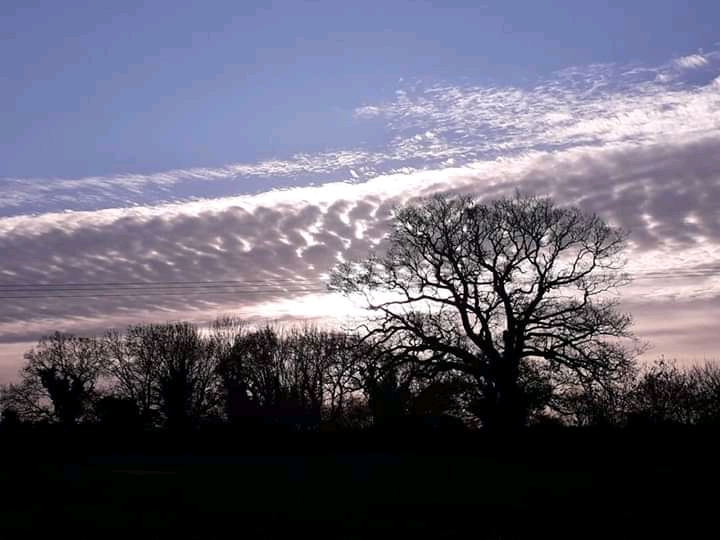By the time I reached the meadow a bank of clouds was sat along the eastern horizon, dimming the light even as it created some wonderful herringbone patterns in the sky.