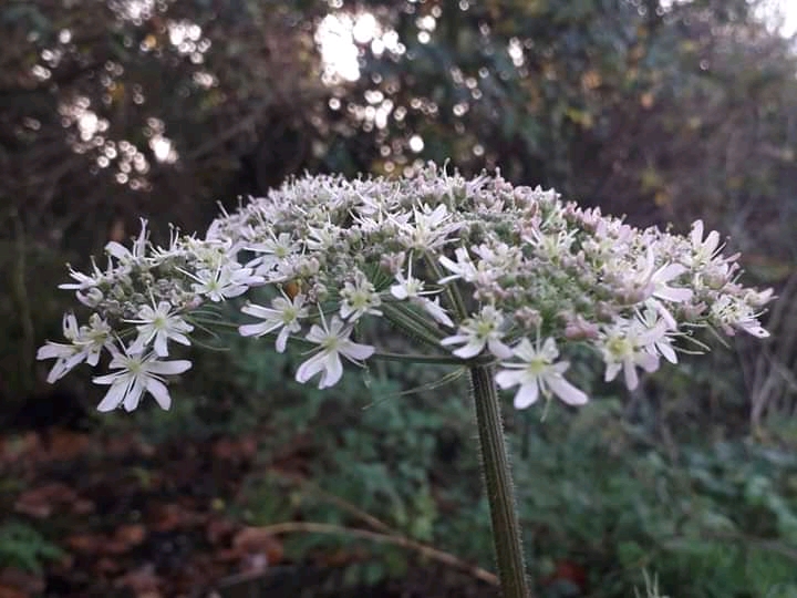This hogweed plant at the edge of the meadow – still in flower despite it now being late November – caught my eye as I wandered. Luckily, just as I stopped to take a few photographs, the sun reemerged from behind the clouds, creating a lovely, slightly bokeh, background for some of my shots.