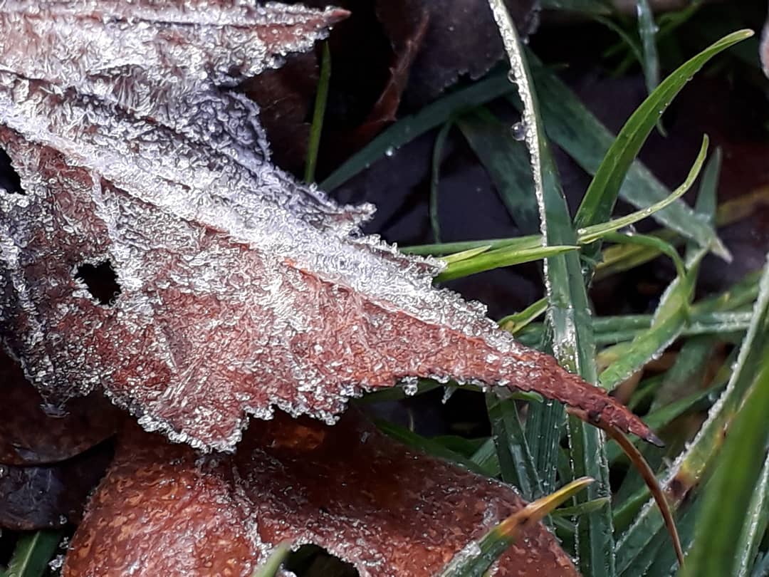 It wasn’t a noticeable frosty morning but there were, however, lots of frosty leaves by the bench alongside the meadow path. I couldn’t resist photographing them. By the time I left the bench the frost had all melted away.