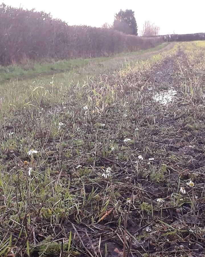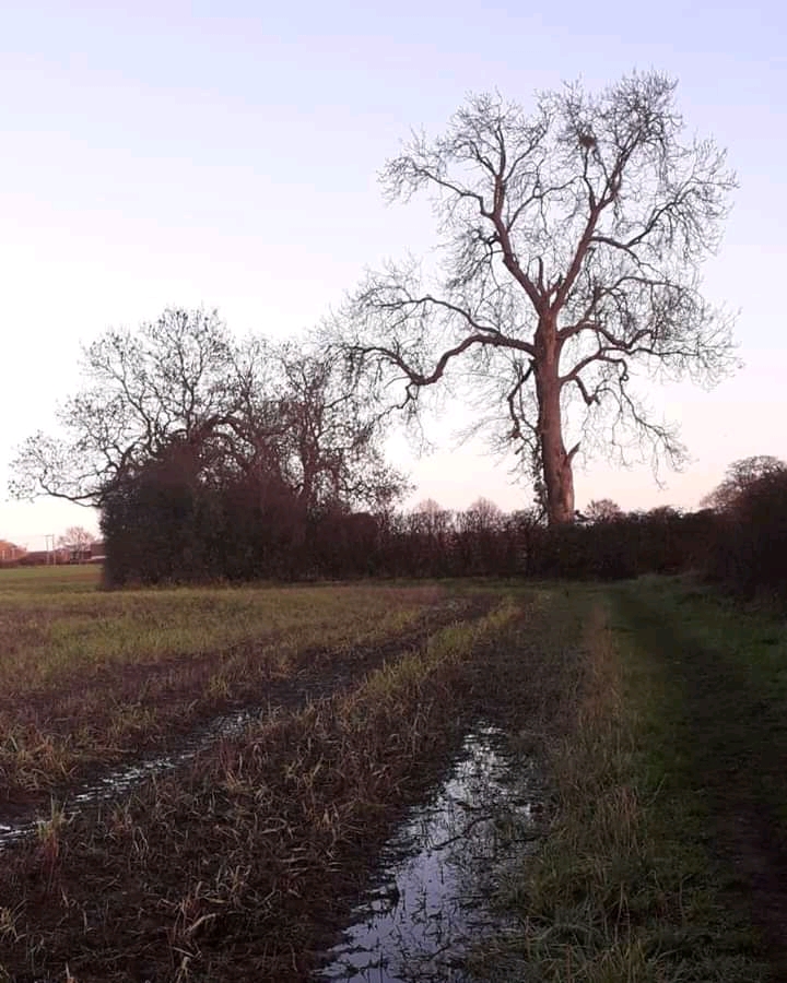 The footpath here edges along several fields. The paths were incredibly puddled and muddy, as well as treacherously slippery in places. I managed to stay upright, but my feet nearly went flying out from under me several times.