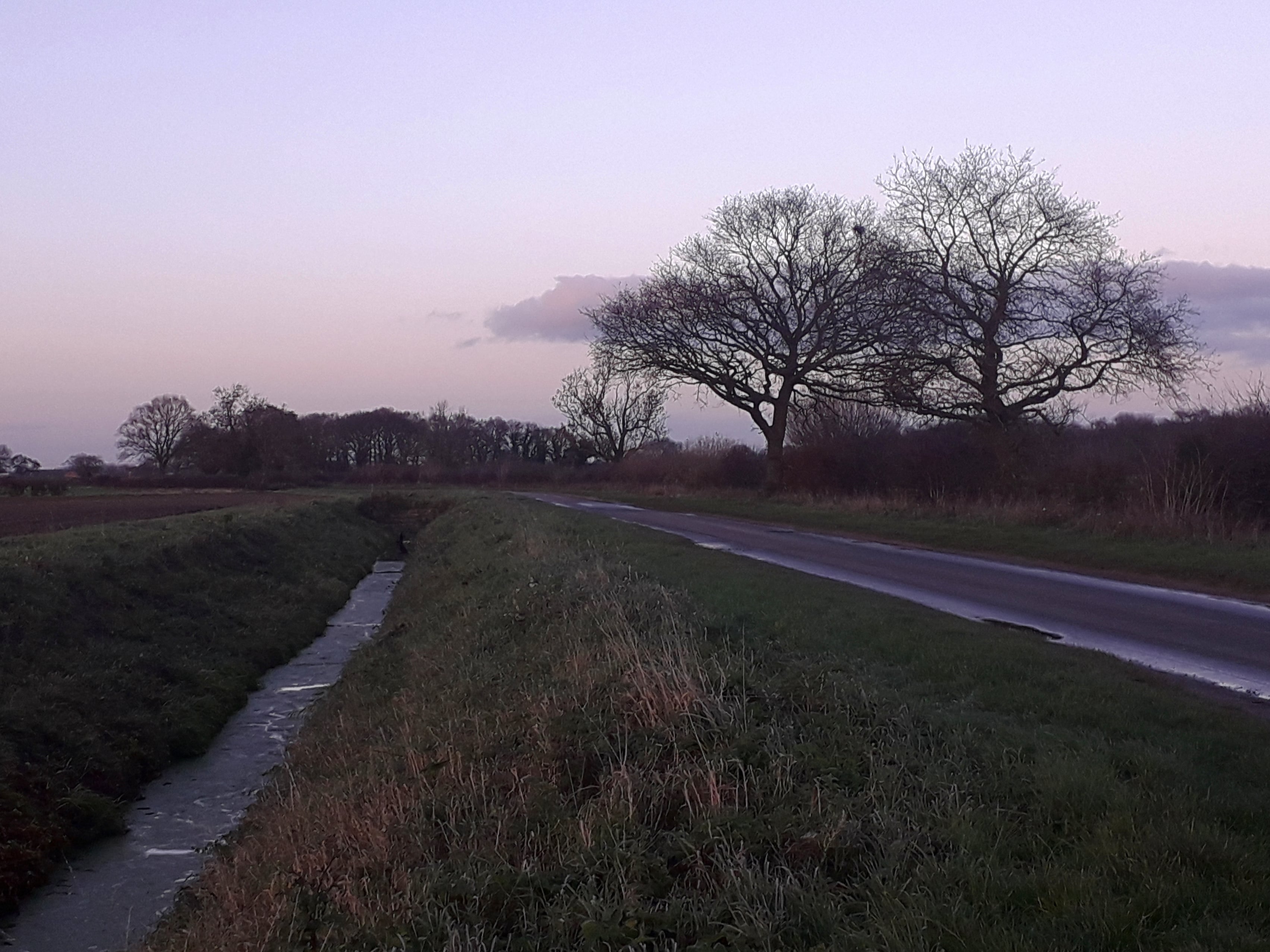 The sun set whilst I was out and about. The view of the sky and the last light over the fields and hedgerows was beautiful.