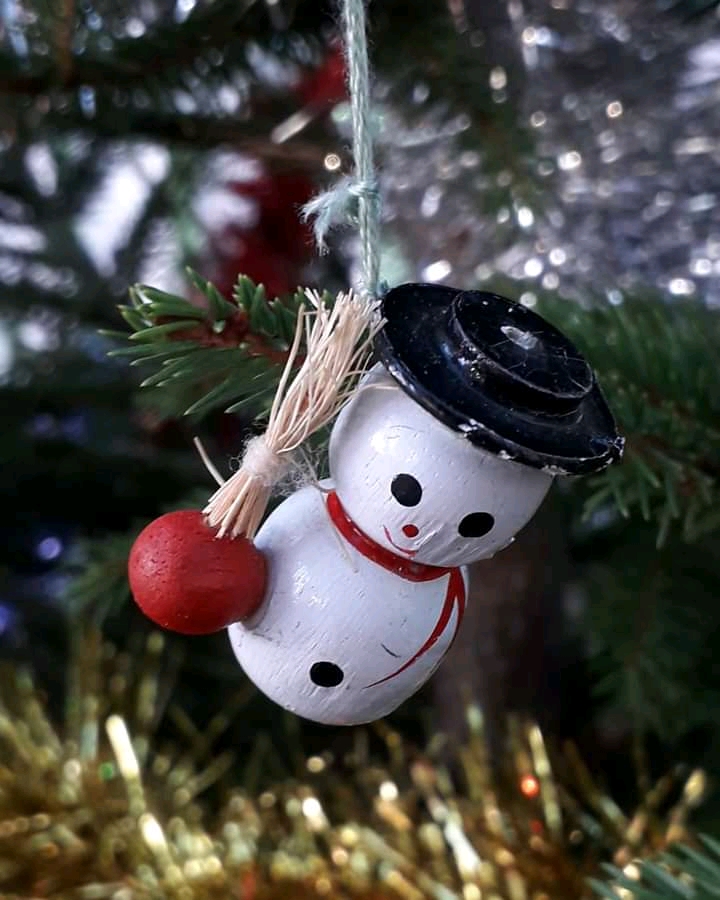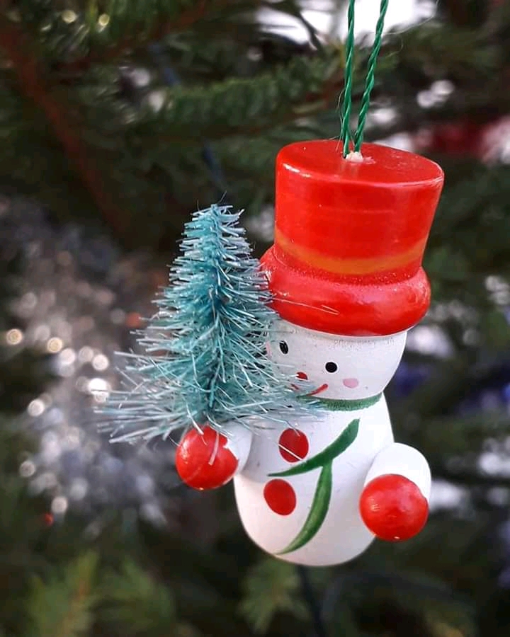 Two of my favourite decorations are a pair of little wooden snowmen. The first of these, like Santa Ran-tan, we’ve had for decades. The second is from the very first box of decorations that I bought whilst living on my own.