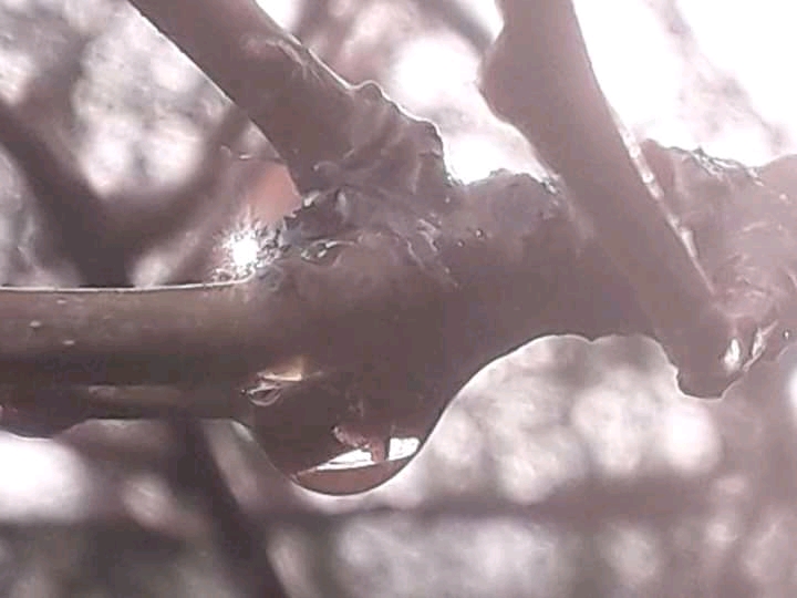 My eye was caught by a few little things: a droplet catching the light where it clung to a branch in a hedgerow; a clump of lichen on a twig.