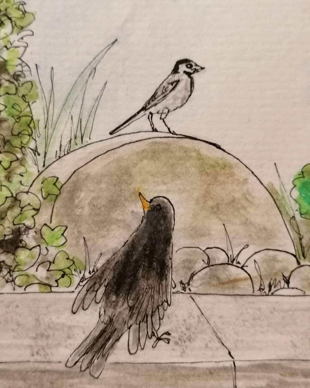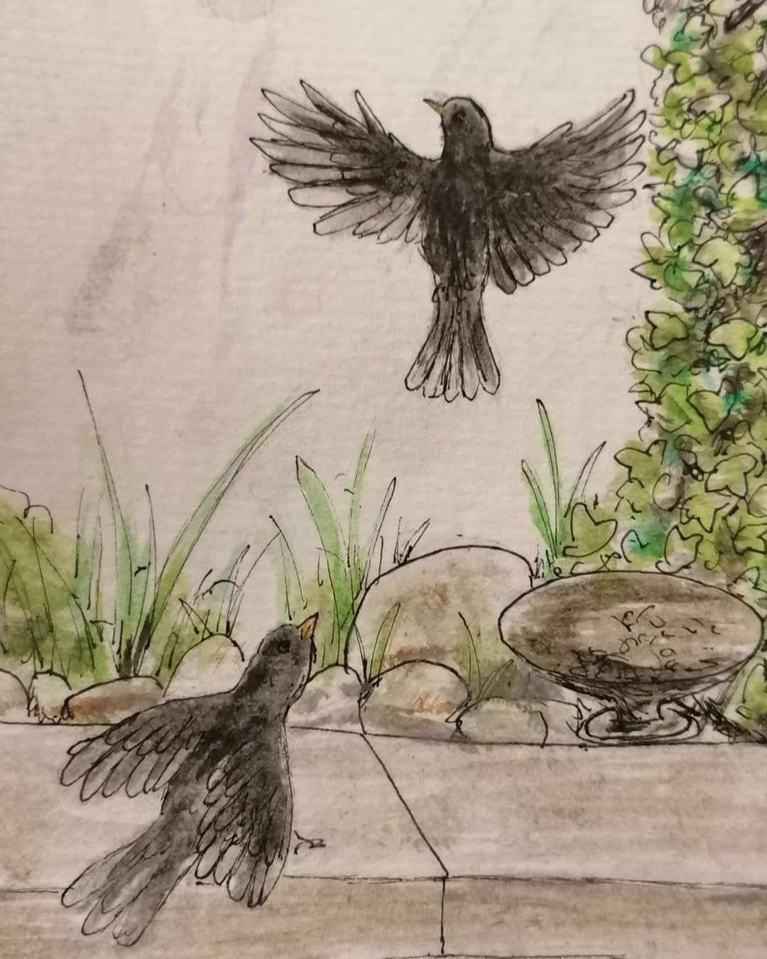 For day 228 of 365 Days Wild I spent some time watching and sketching the blackbirds in the garden.