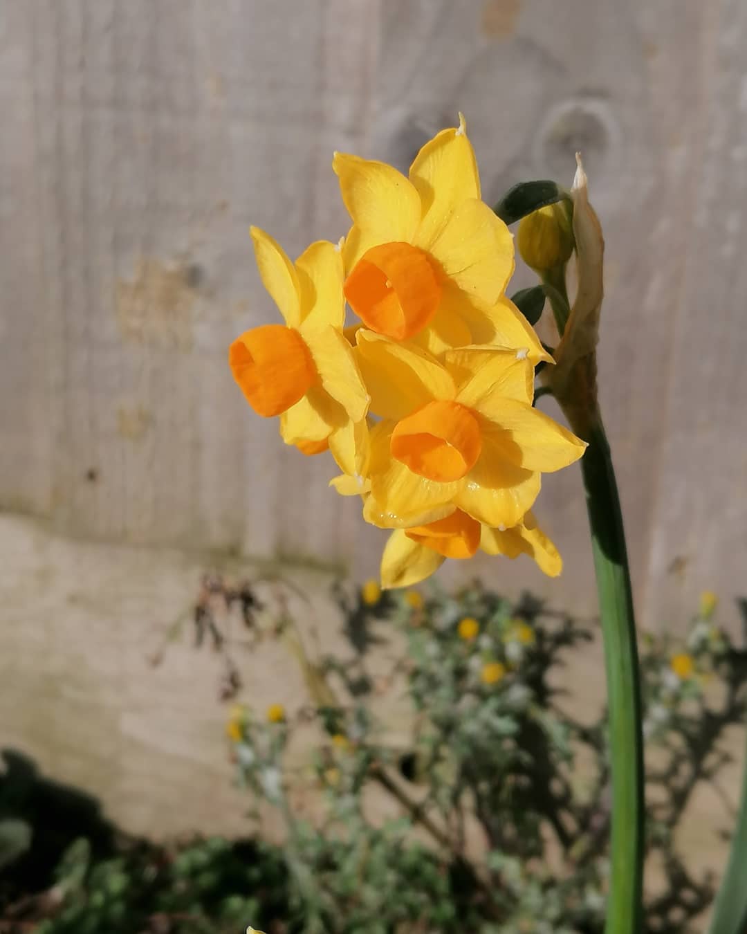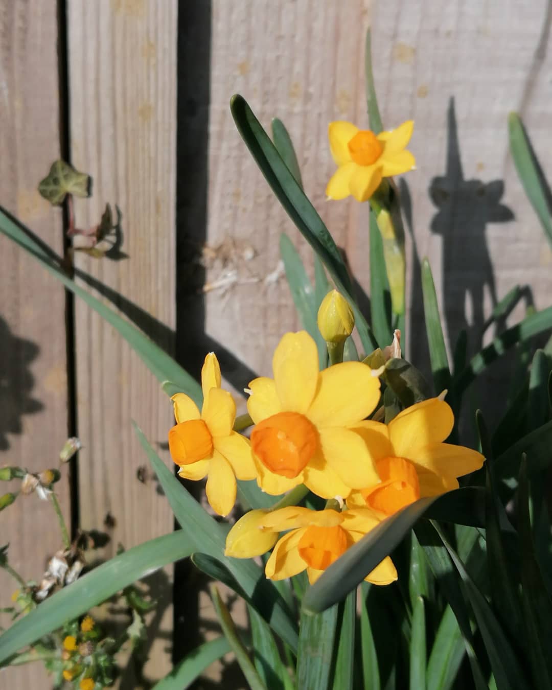 I spotted my first daffodils of the year in bloom beside a garden fence. Whilst there are also a couple of buds in the garden that look like they’ll be coming into flower in the next few days, these ones were fully out. Their wonderfully bright yellows and oranges added a cheerfully Spring-like feeling.