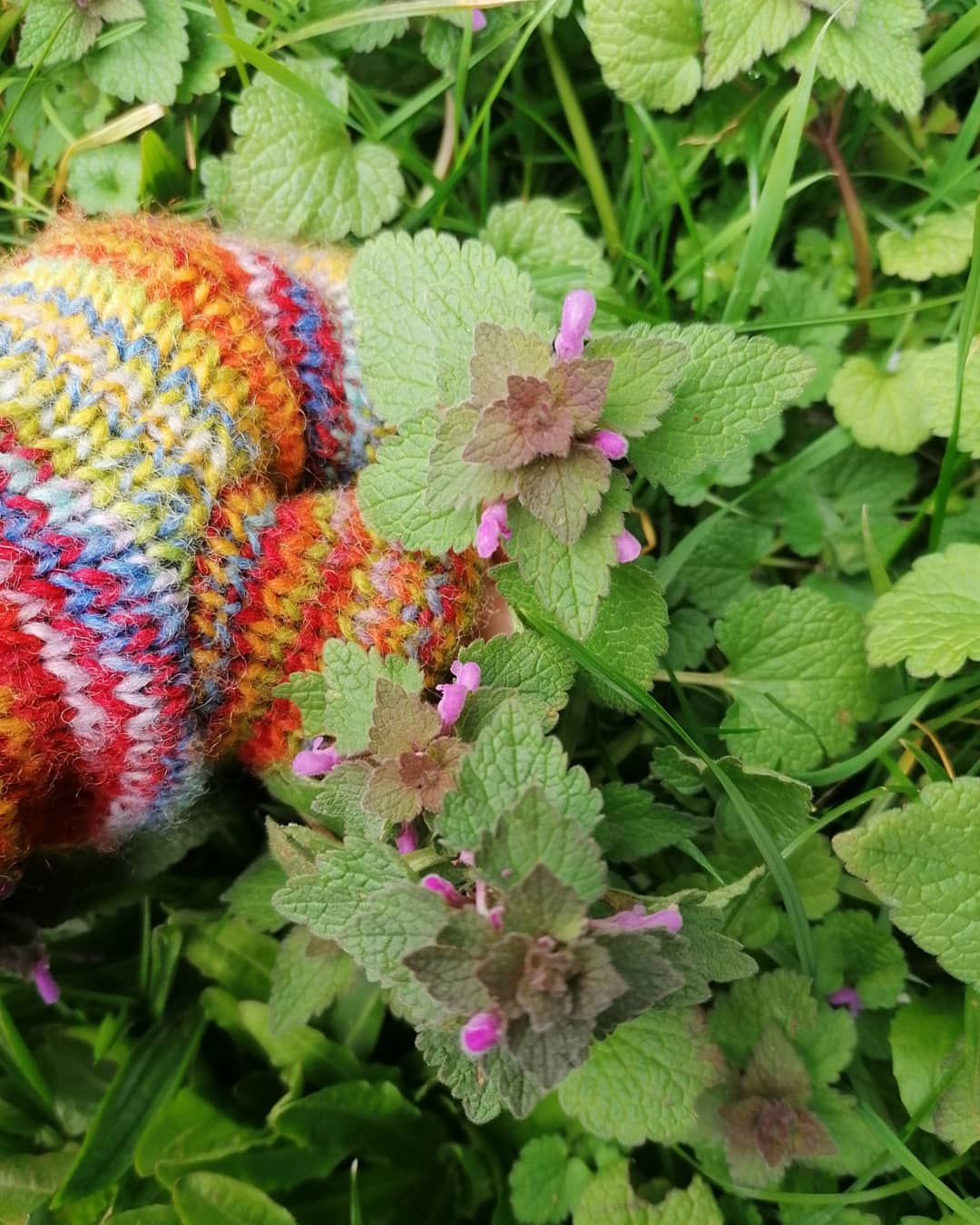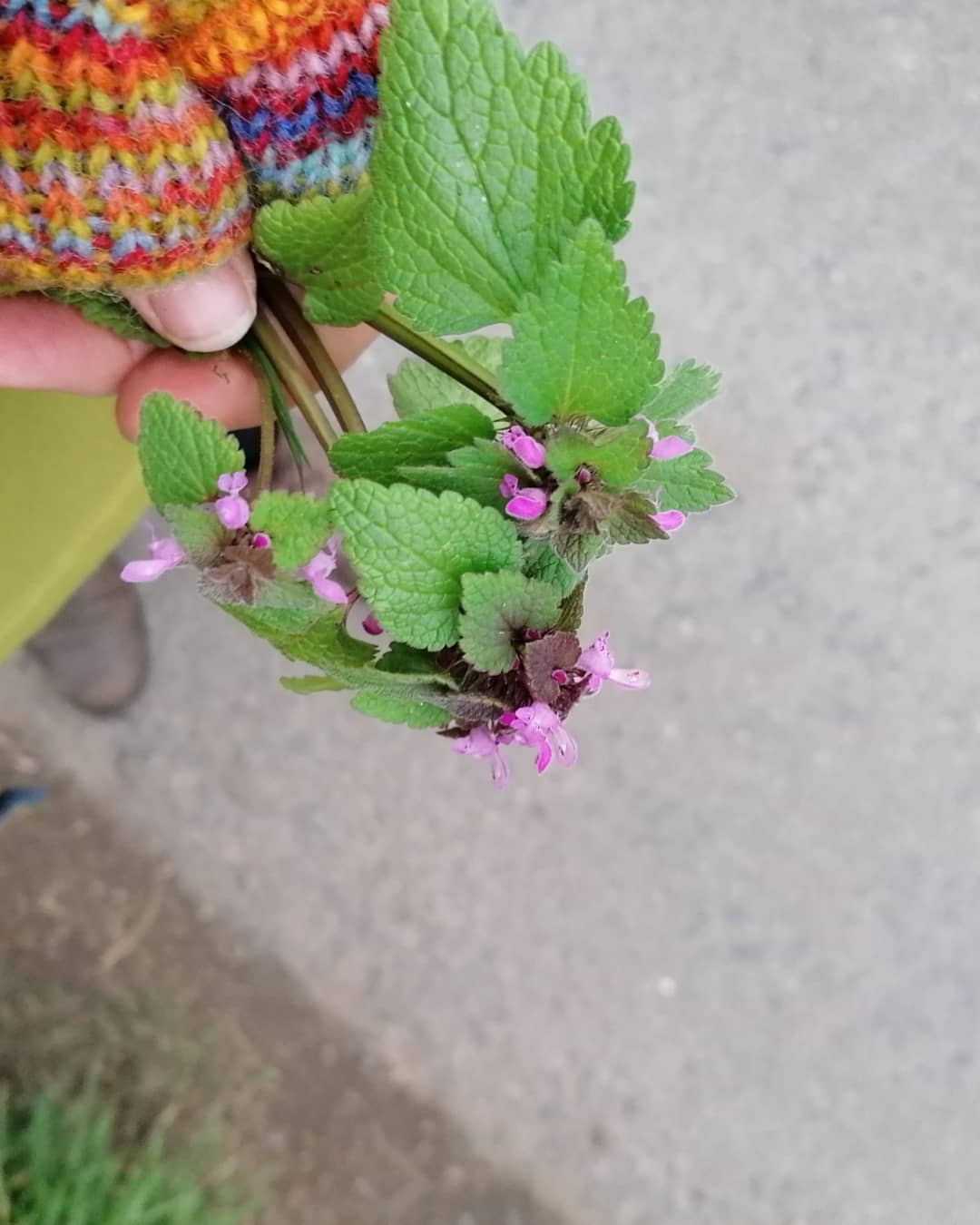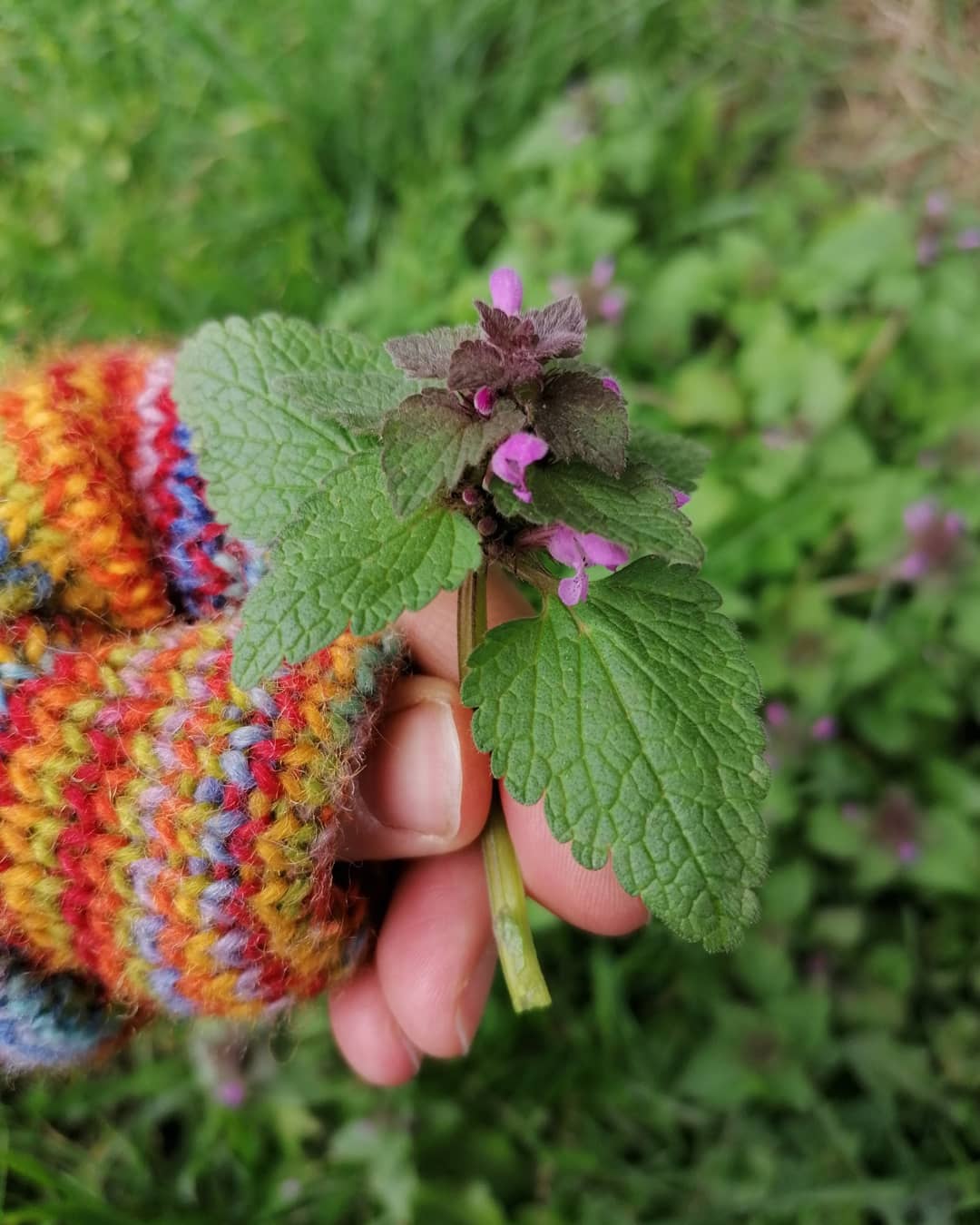 Next I wandered out to the bank beside the lane where the Red Dead-nettles are growing profusely. I selected just a handful of sprigs for my picture. Even though there are lots, I took just one from each patch of them that I passed. I wouldn’t want to deprive other passerbys, or the wildlife, of their wonder.