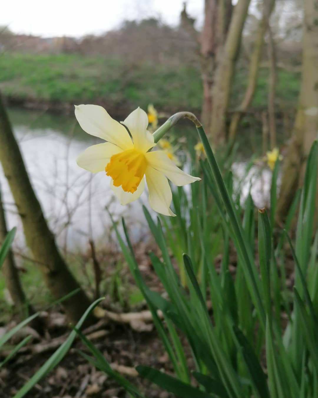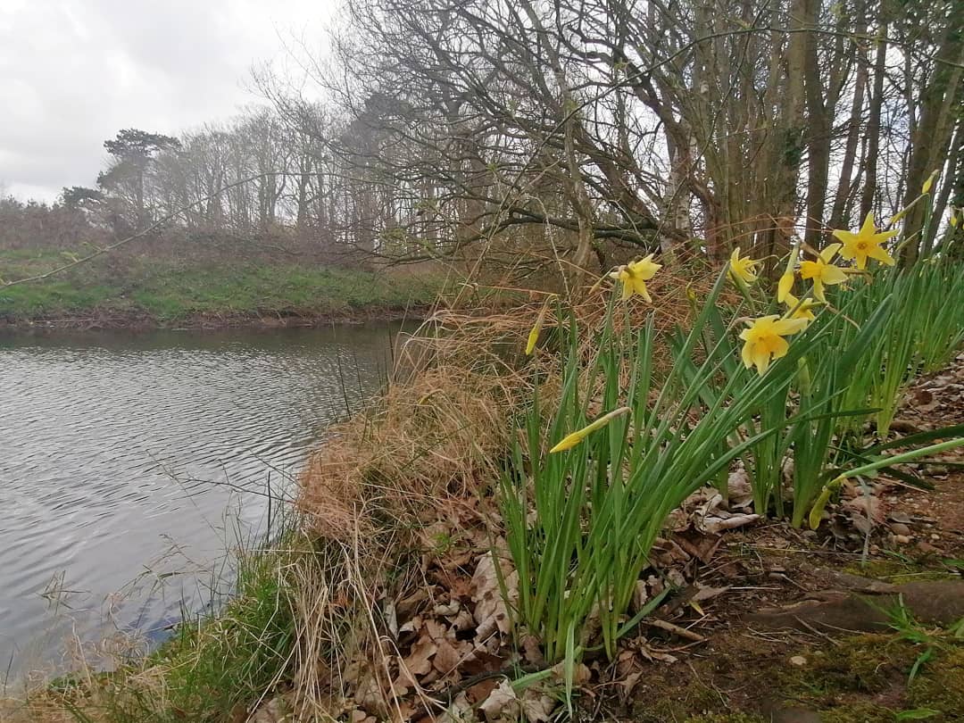 The daffodils are also now opening their trumpet flowers beside the pond and along the bank of the dyke. These bright yellow blooms are wonderful heralds of Spring.