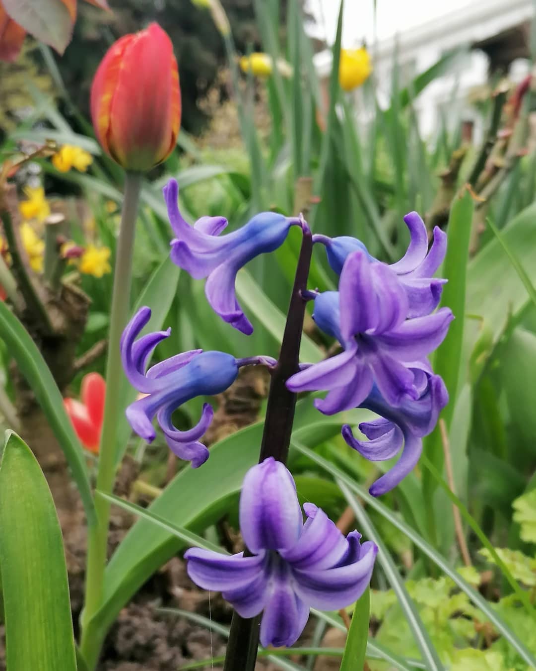 A fine display. I have been recycling potted hyacinths into the garden for years. The time lag you mention means they are always a pleasant surprise when they bloom again
