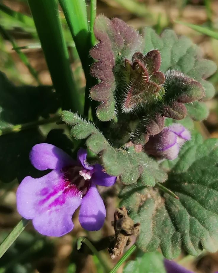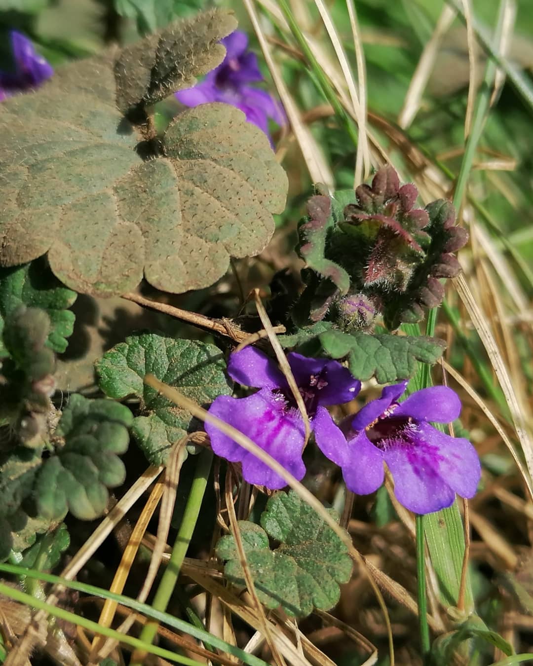 Despite its name, this plant is not actually related to ivy and is a member of the dead-nettle family. It commonly grows in shady areas, in woods, hedgerows, grassland and waste ground. Its flowers, which appear from March until June, are violet coloured and strongly scented. Its leaves are evergreen. It grows in clumps and spreads using overground runners that frequently send down roots.