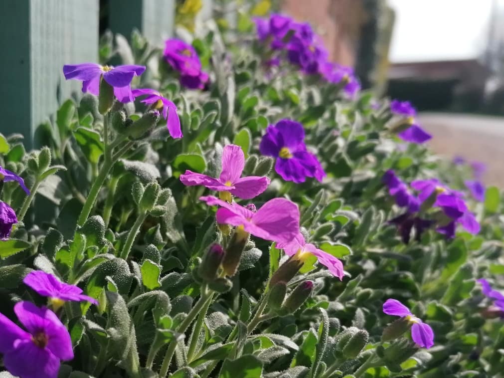 I think it might be purple rock cress (Aubrieta deltoidea). This small herbaceous perennial is native to southeastern Europe, though it has been introduced in many areas as an ornamental plant. It is a great food source for early pollinators.
