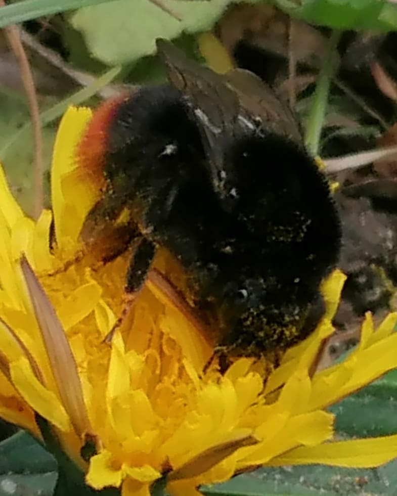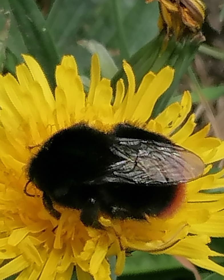 The first thing that I spotted was a Red-tailed bumblebee (Bombus lapidarius) on the dandelions. Many people see dandelions as just an annoying weed that needs to be torn out and disposed of, but they’re a great flower for early pollinators.