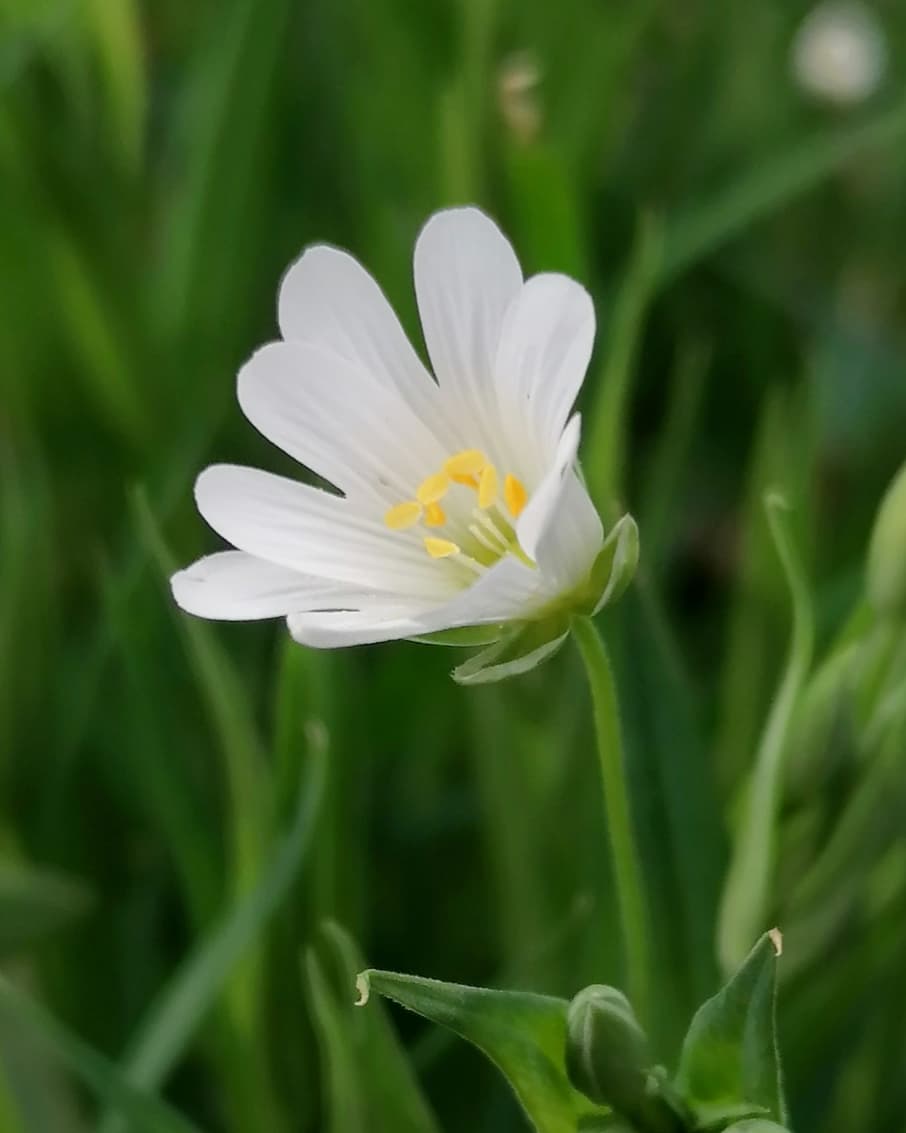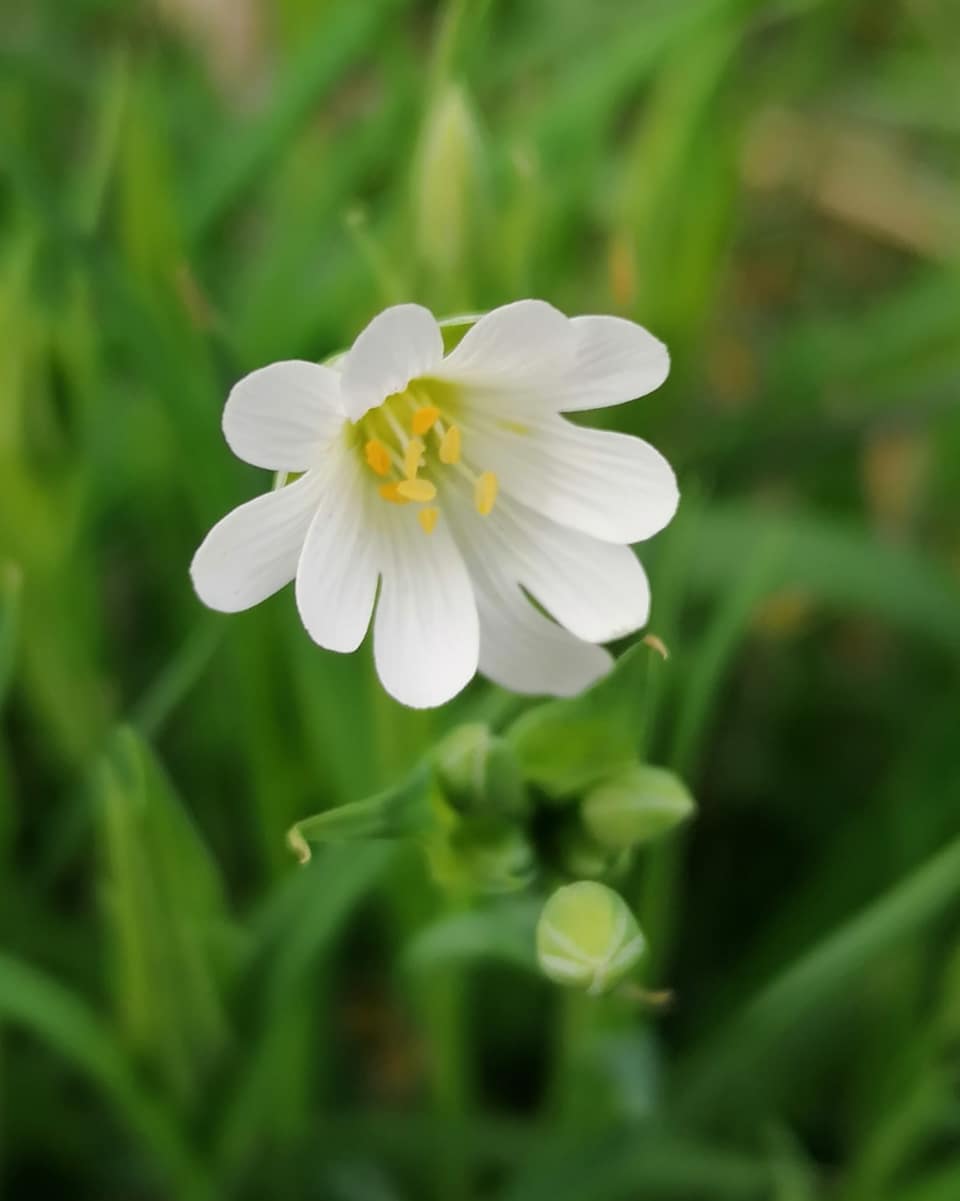 Other names for this flower include Adder’s Meat, Star of Bethlehem, Snapdragon, Daddy’s Shirt Buttons, Stinkwort, Wedding Cakes, Milkmaids and Brassy Buttons. Its most well known common name, Stitchwort, comes from its use in traditional herbal remedies for the pain of a stitch in the side.