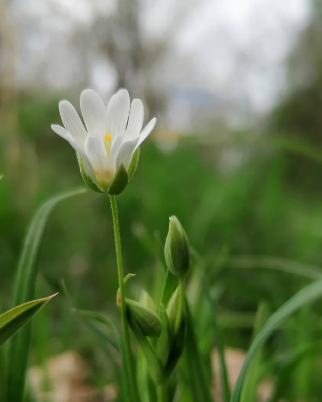 I took very few photos whilst I was out as the light was generally poor. I did, however, stop for a little while beside the sandy bank at the bottom of the meadow where the first of the Greater Stitchwort (Stellaria holostea) is coming into flower.