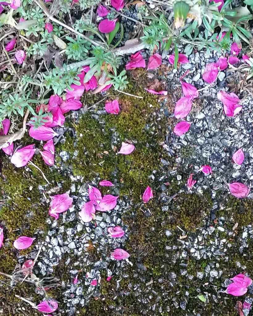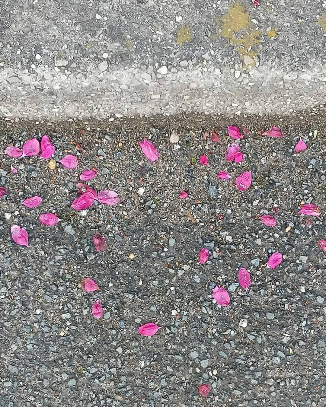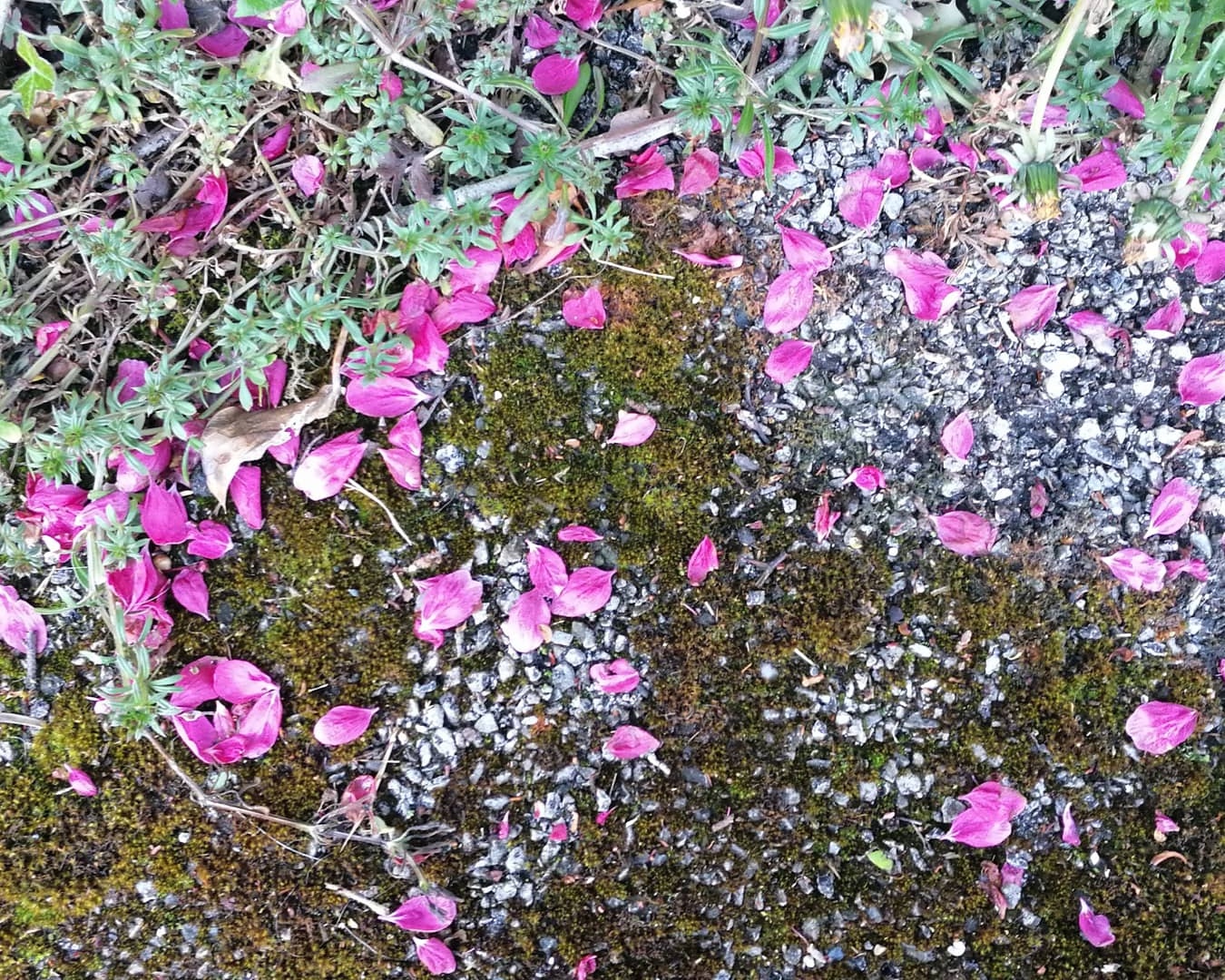 We have magical white confetti at the moment. Every Spring, the wind scatters blossoms everywhere!
