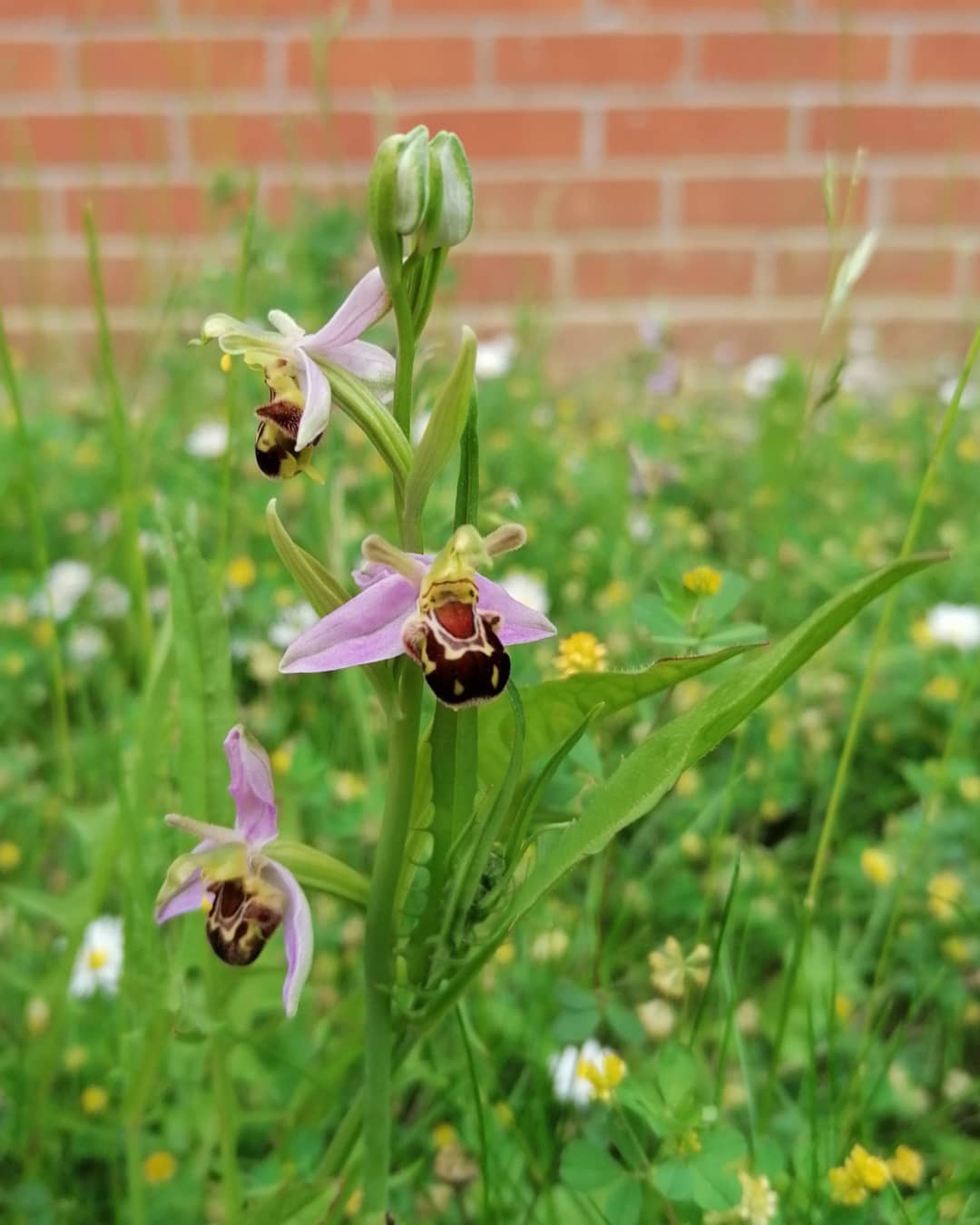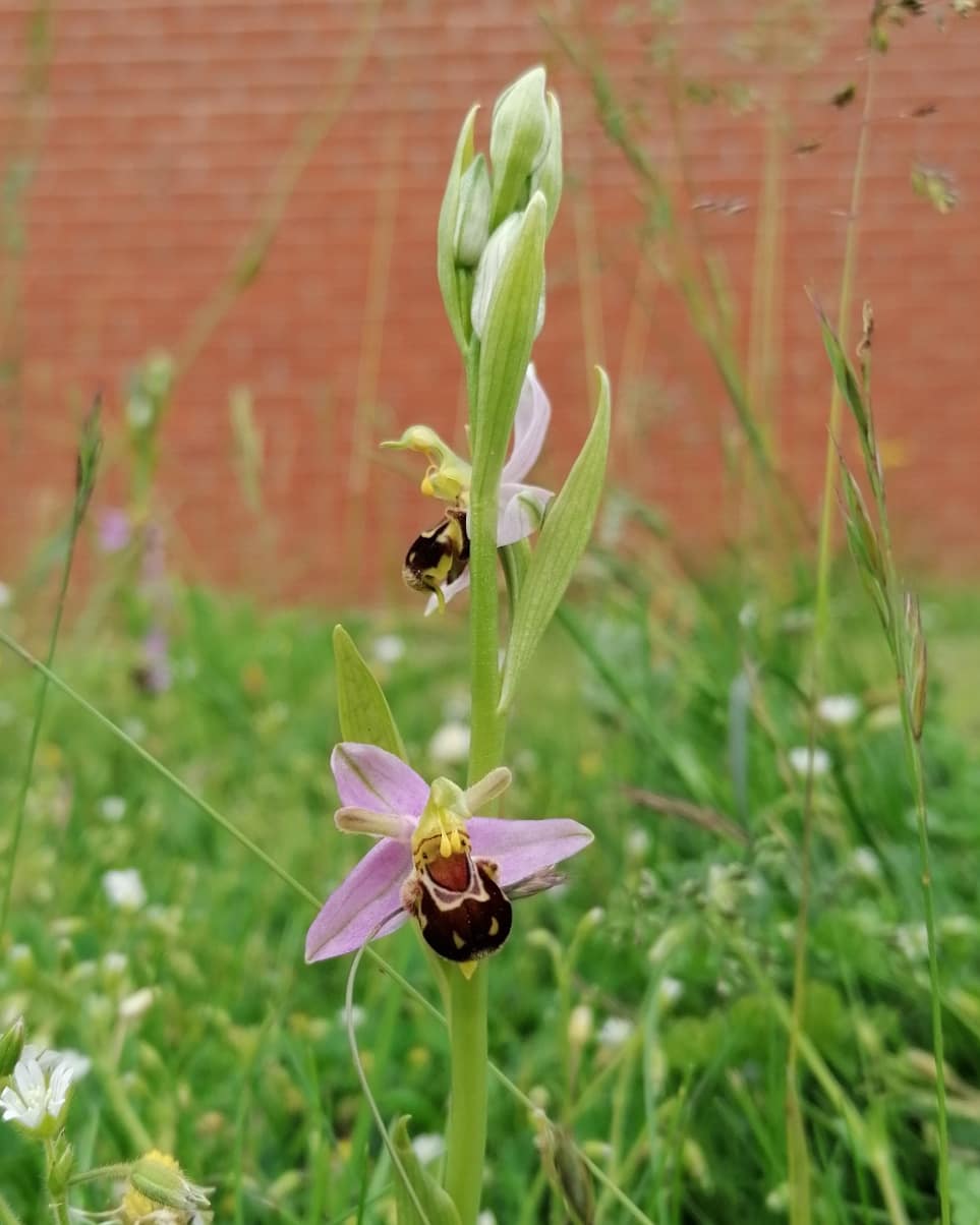 Today I rescued some bee orchids (Ophrys apifera) from being mowed.